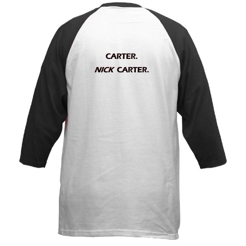 He's Carter... Nick Carter... and he's on your shirt! Show your love for the most epic collaboration of all time with this badass baseball tee. Features the 00Carter logo on the front and Carter's famous quote on the back.