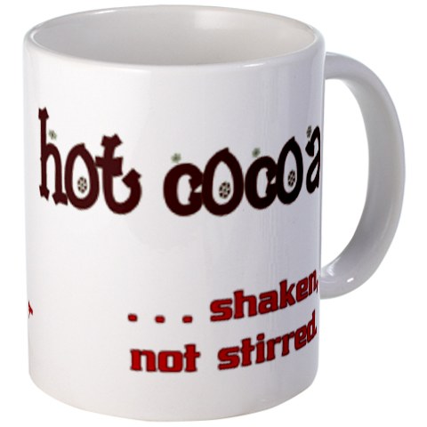 Cozy up in front of your computer and drink your hot cocoa like 00Carter - shaken, not stirred - in this elegant cocoa mug.