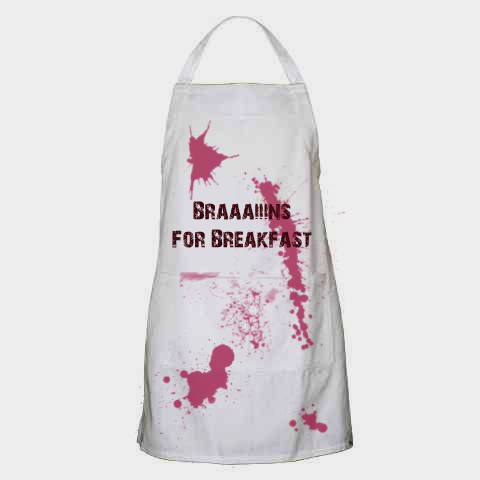 Ever wake up the morning after a late night of reading Song for the Undead with a hankering for human flesh - or, better yet, braaainsss? Then this is the apron for you! Artfully bloodstained, this apron will protect your clothes from the spray of bodily fluids as you gnaw on your next meal.