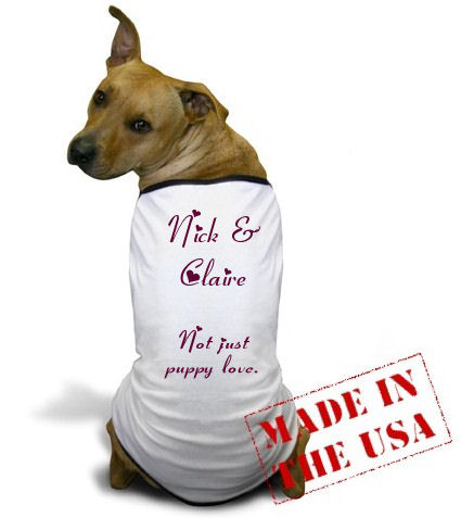 Show your support for Nick & Claire by forcing your pet into this adorable doggie t-shirt!