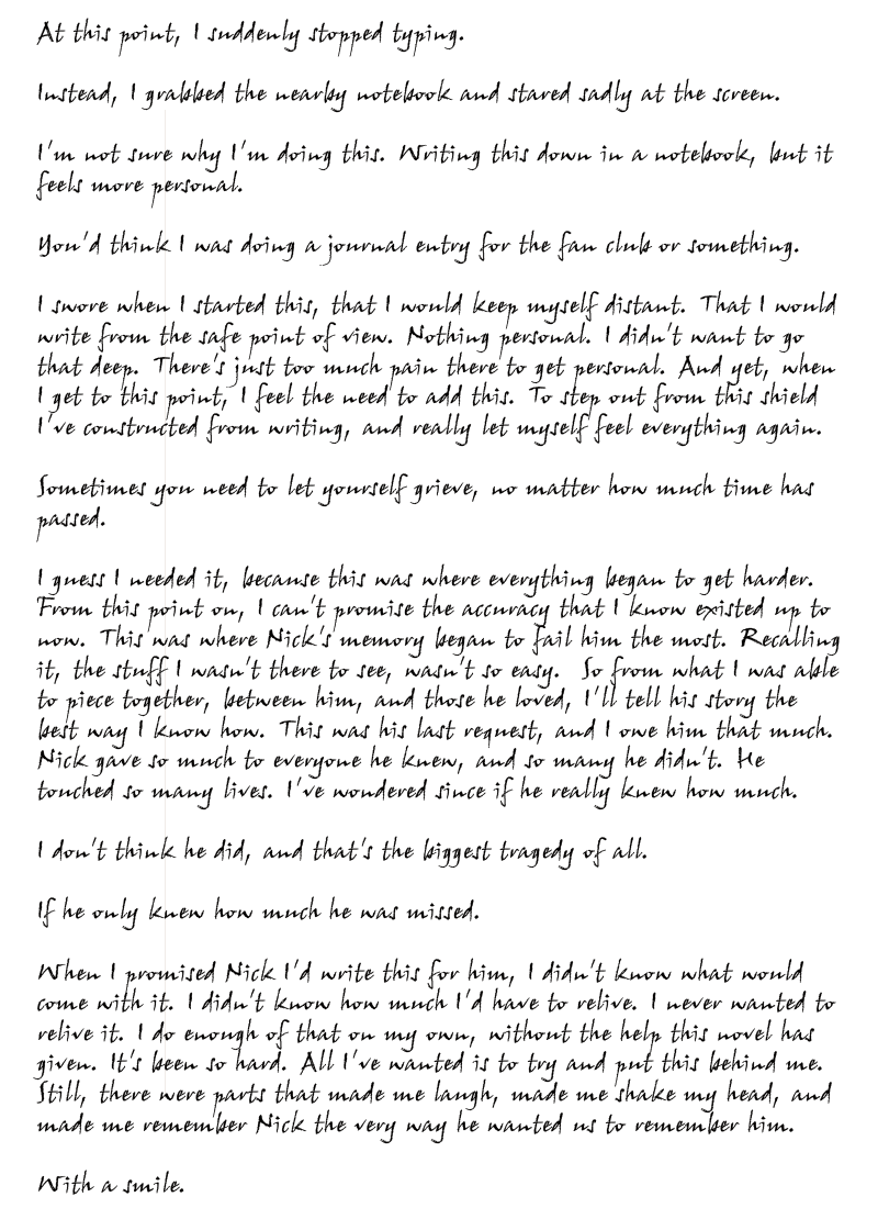 impersonal and safe. Where I can pretend to be someone who never knew Nick. I